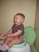 And to save the best for last.... We got a POTTY!! I know that I am too young for this thing, but we are working on getting used to the idea and habit. I am liking it. Again, babies are smarter than you give us credit for. You can read up on infant potty training if you are curious. I am so cute though....